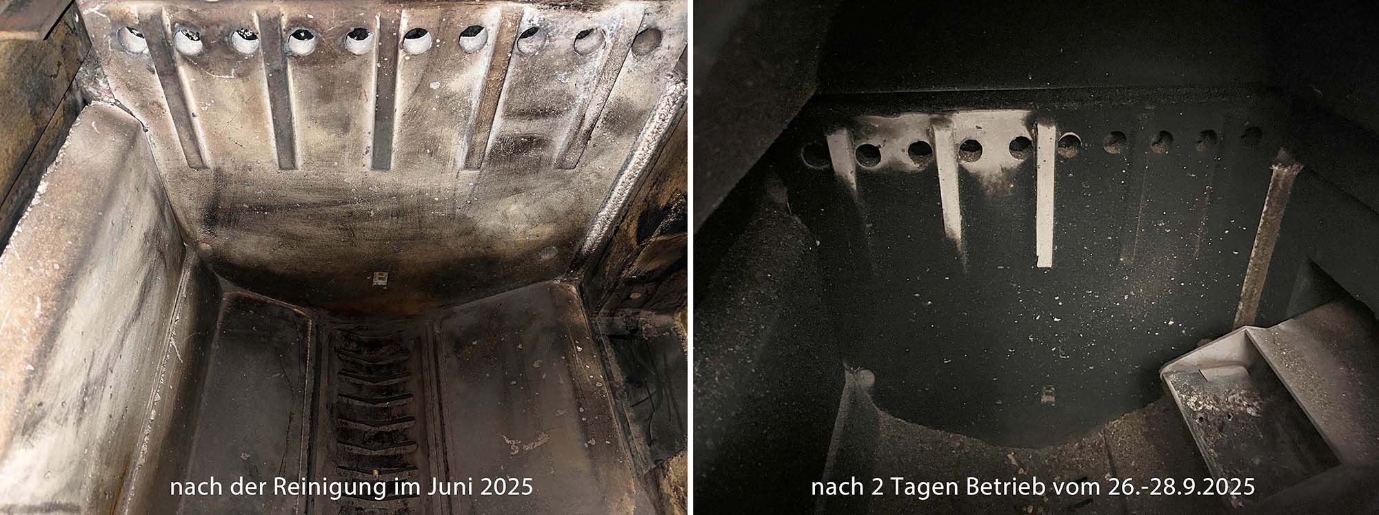 Hallo,meine Pelletheizung (D20P mit A25) war von Ende April bis vorgestern abgeschaltet und wurde im juni gründlich gereinigt. Vorgestern (26.9.) habe ich sie wieder eingeschaltet und heute ist der Brennraum komplett verrußt (siehe Foto!). Was ist das Problem, was kann ich dagegen tun?Gruß, Helmut