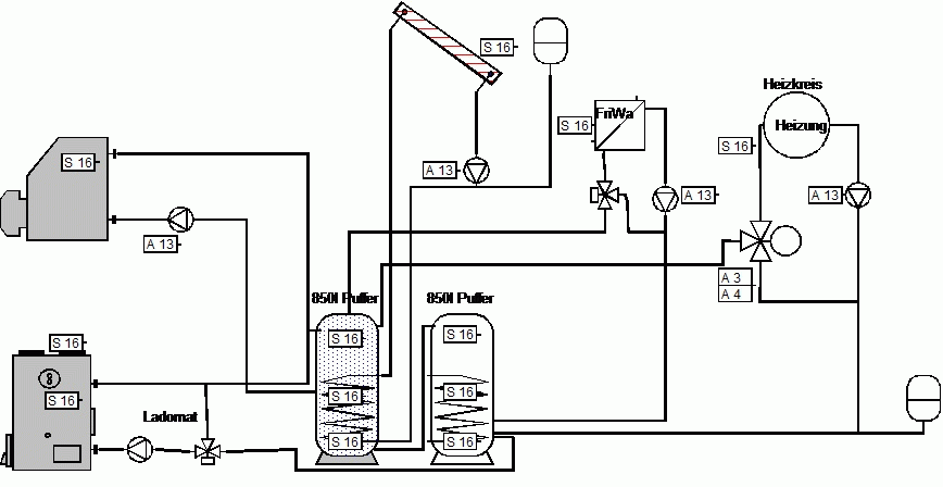 Christian – schau Dir bitte das Haus noch mal gaaaanz genau an ob Du irgendwo zusätzliche Puffer plazieren kannst. bei 2×850 gehe ich davon aus dass aus reiner Bequemlichkeit heraus im Winter am Ende dann doch wieder der Ölbrenner läuft und nur die hälfte der Energie durch den Holzkessel bereitgestellt wird.