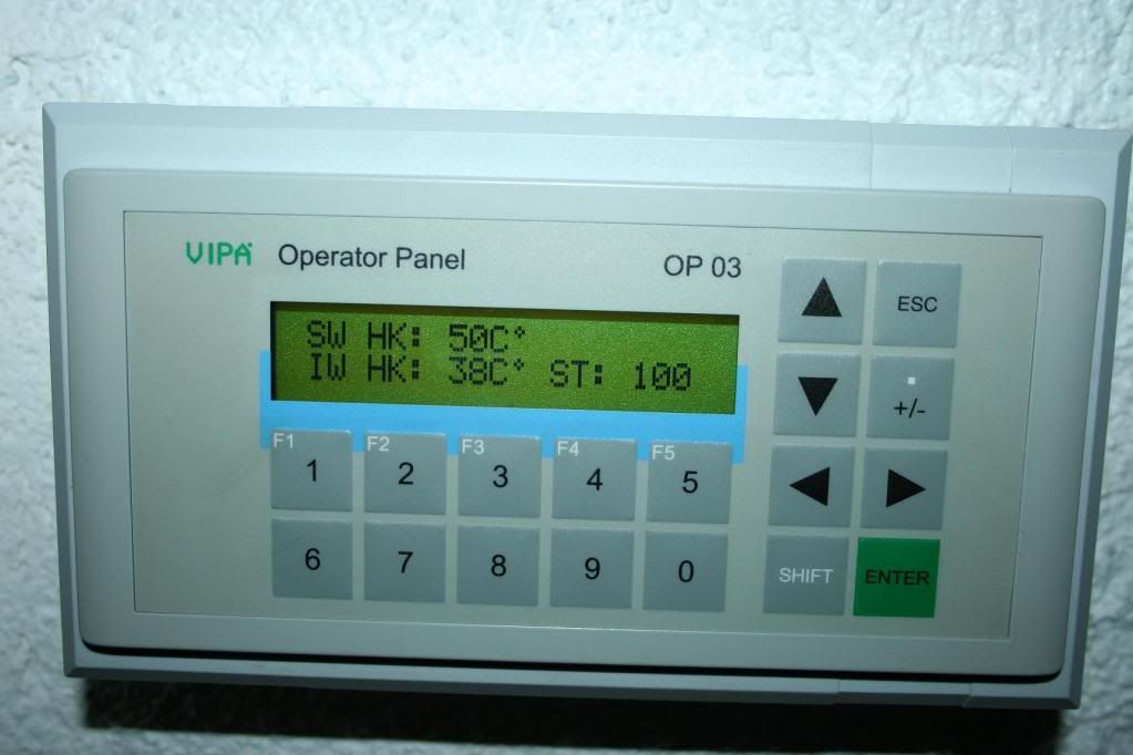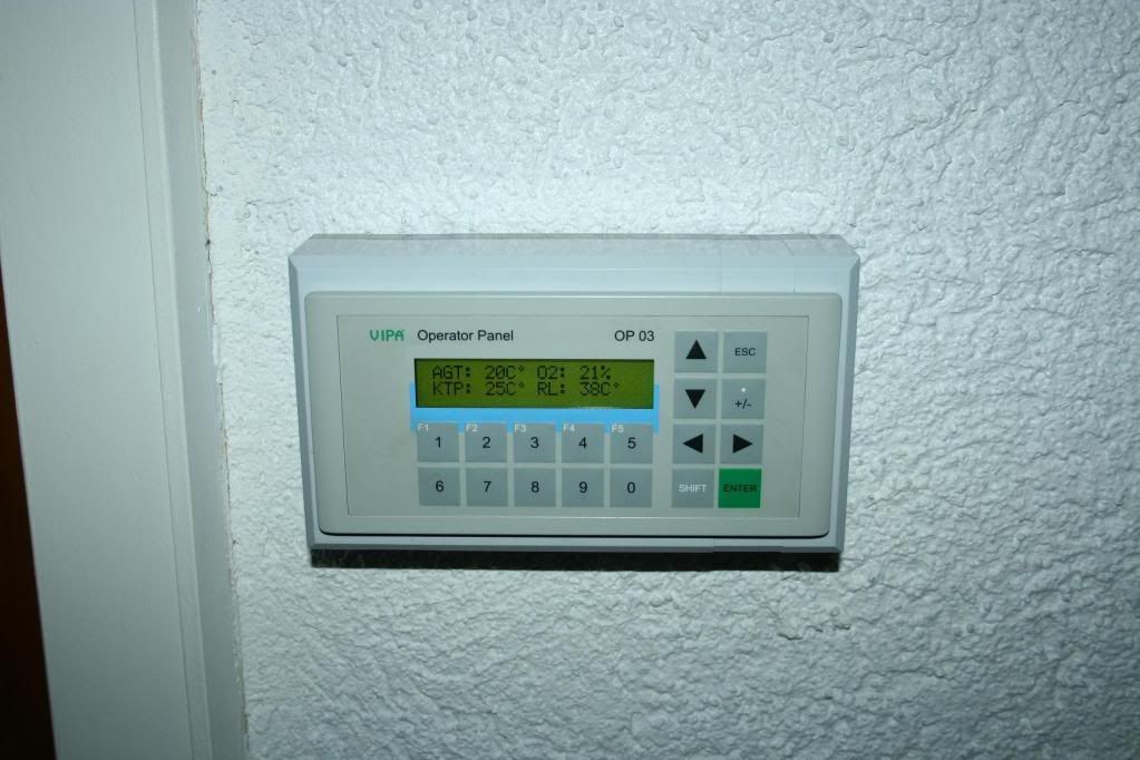 Im Wohnraum habe ich ein Grafikdisplay (Siemens OP3) auf dem ich alle aktuellen Parameter angezeigt bekomme: Agt, O2, Kesseltemperatur, Rücklauftemp zum Kessel usw.